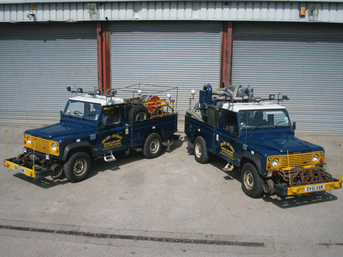 OnLine-OnTrack has its own fleet of road rail Land Rover vactor removal and High Pressure Water Jetting units.